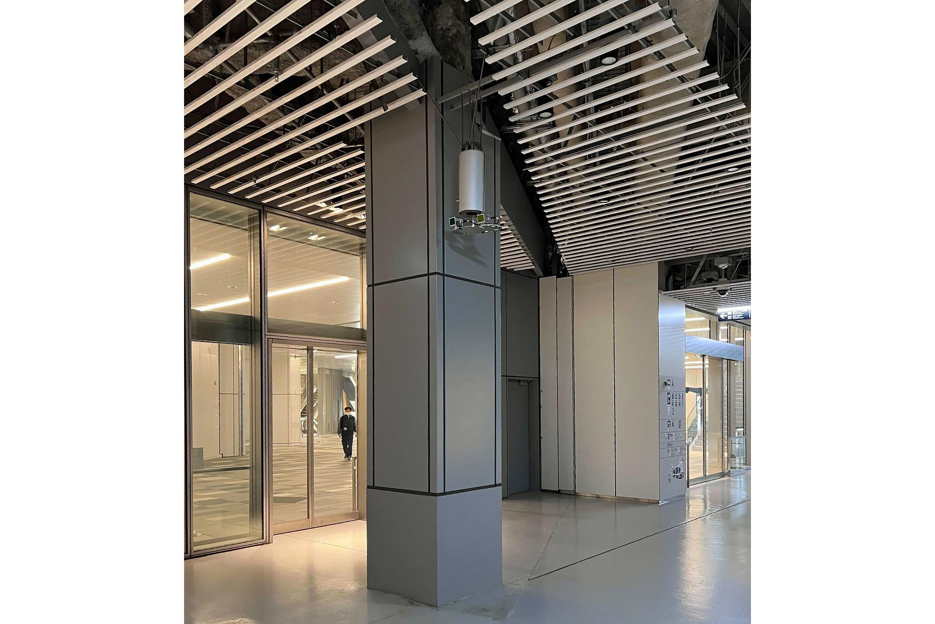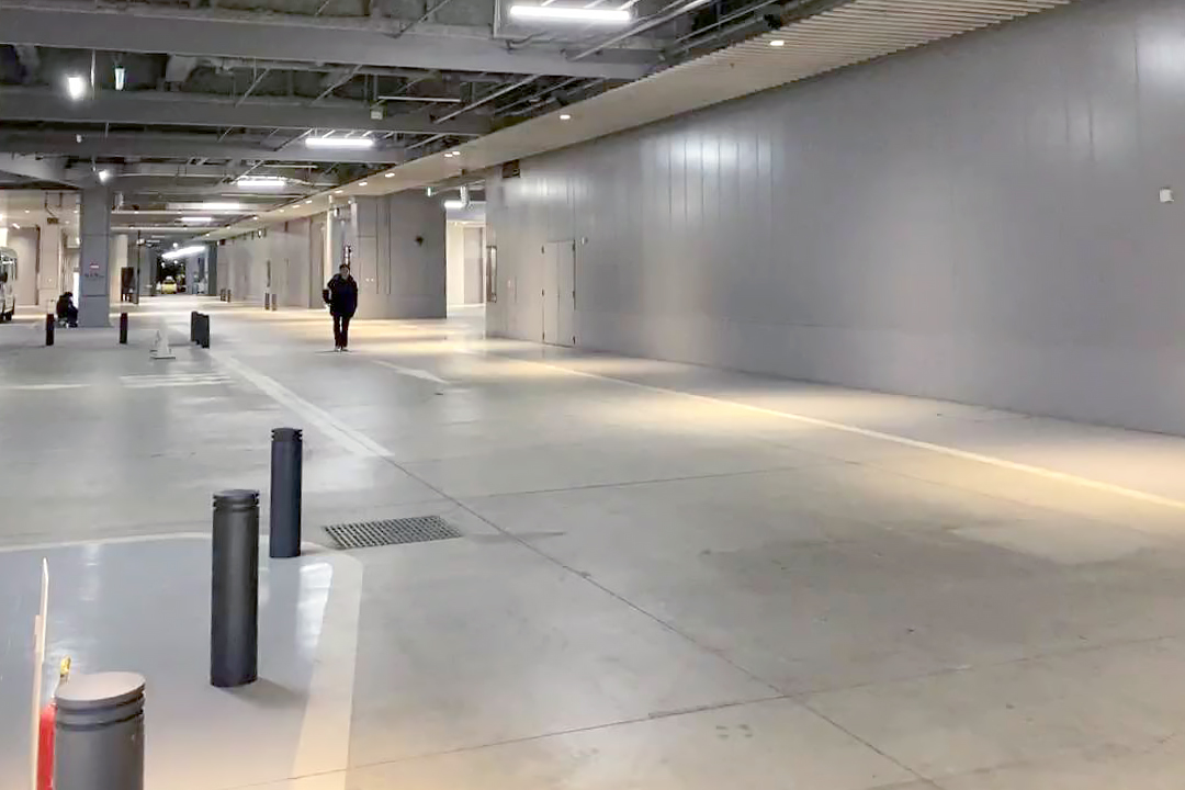 C、D、J、Kエリア付近1階車路の天井に2023年10月5日から設置を開始し、現在LiDAR9台を運用中である。