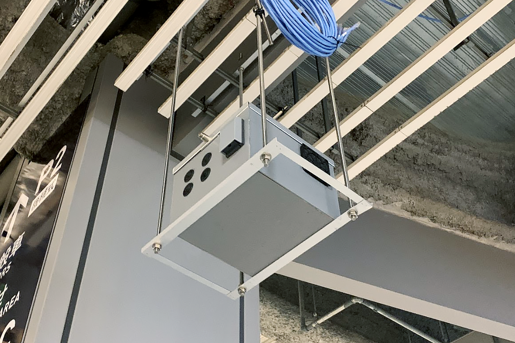 1階車路に設置されたLiDARのデータを集約する装置を格納したボックス。
