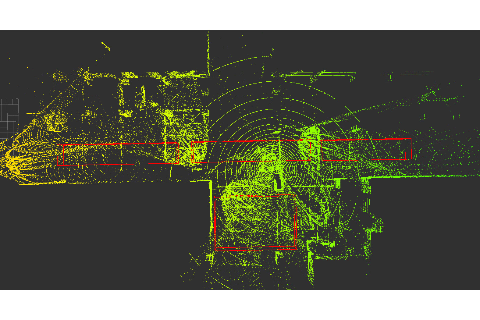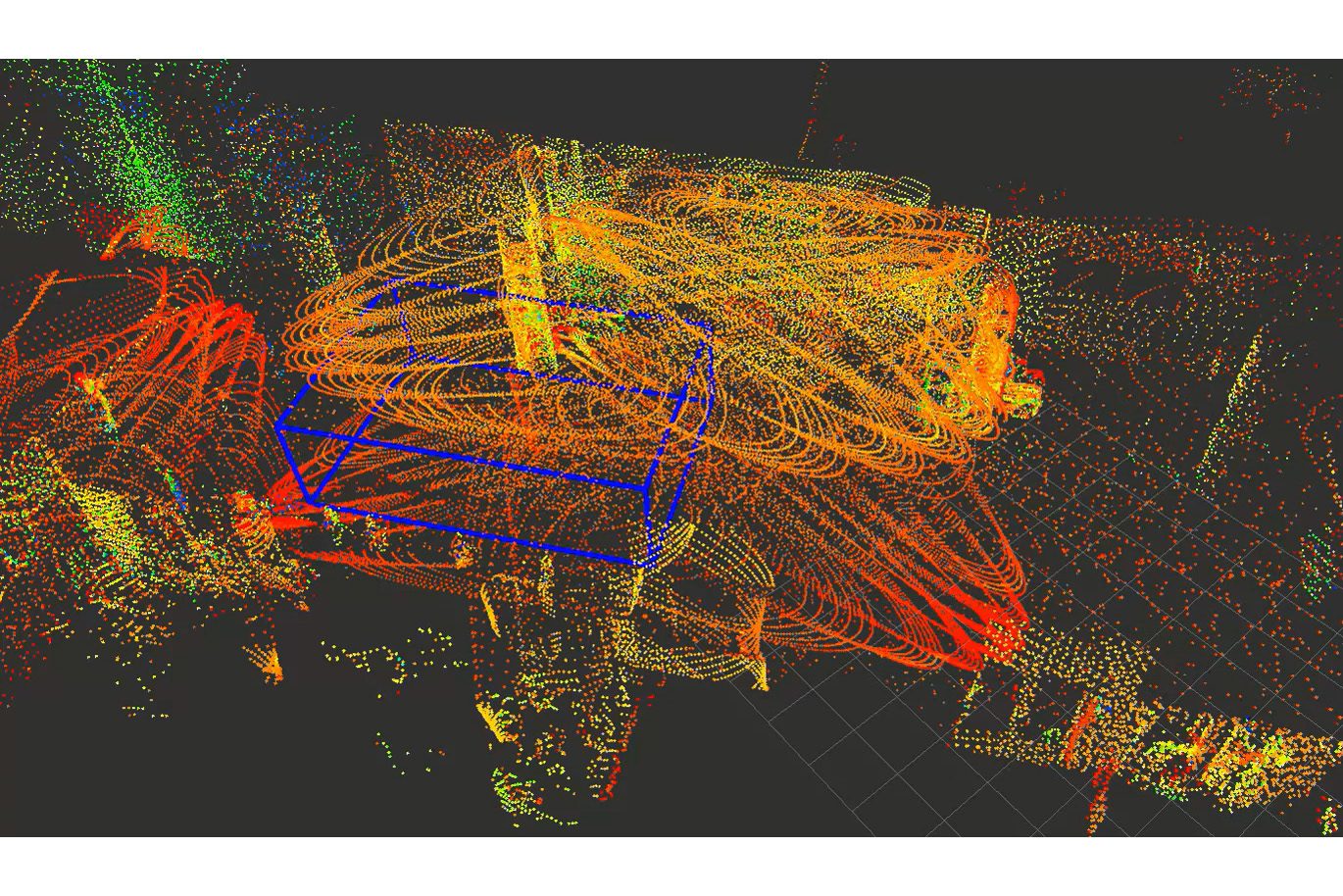 LiDARデータの集約により形成された1階車路の空間デジタルツイン。